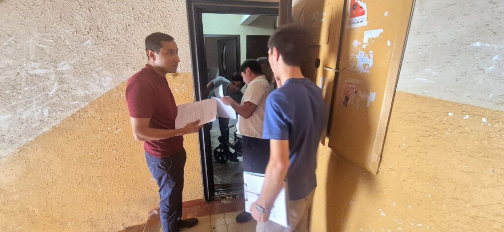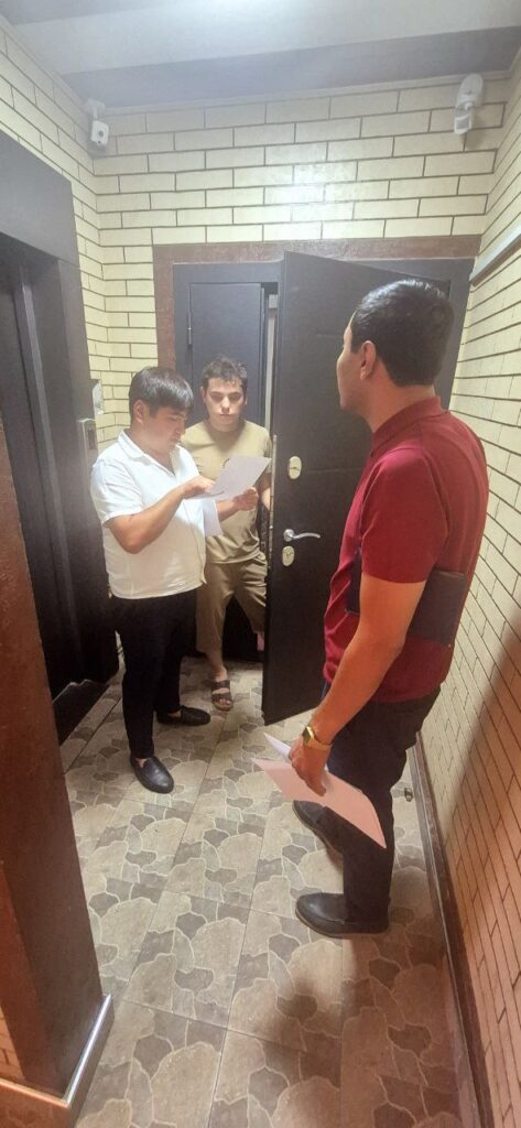 O‘zbekiston Respublikasi Vazirlar Mahkamasining 2024 yil 18-dekabrdagi 853-son qaror ijrosi yuzasidan va qarorda belgilab berilgan topshiriqlarni ta’minlash maqsadida yagona darcha tizimi orqali Sergeli tumanidagi Shukrona M.F.Y hududidagi boshqaruv servis kompaniyasidan kelib tushgan arizalarni Toshkent shahar uy-joy kommunal xo‘jaligi bosh boshqarmasi va Toshkent shahar hududiy qurulish va uy joy kommunal xo‘jaligi nazaroti inspeksiyasi xodimlari hamkorligida joyiga chiqib o‘rganish jarayoni.